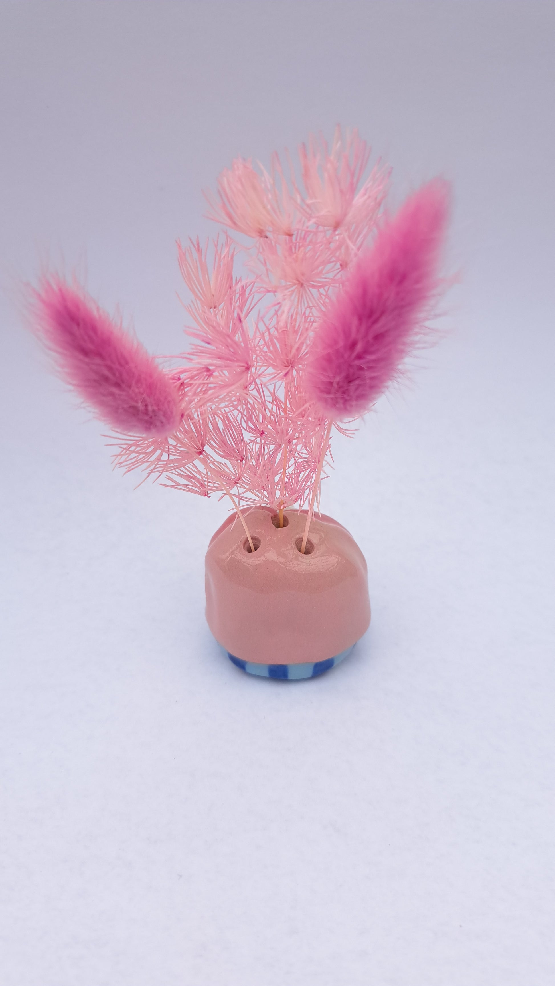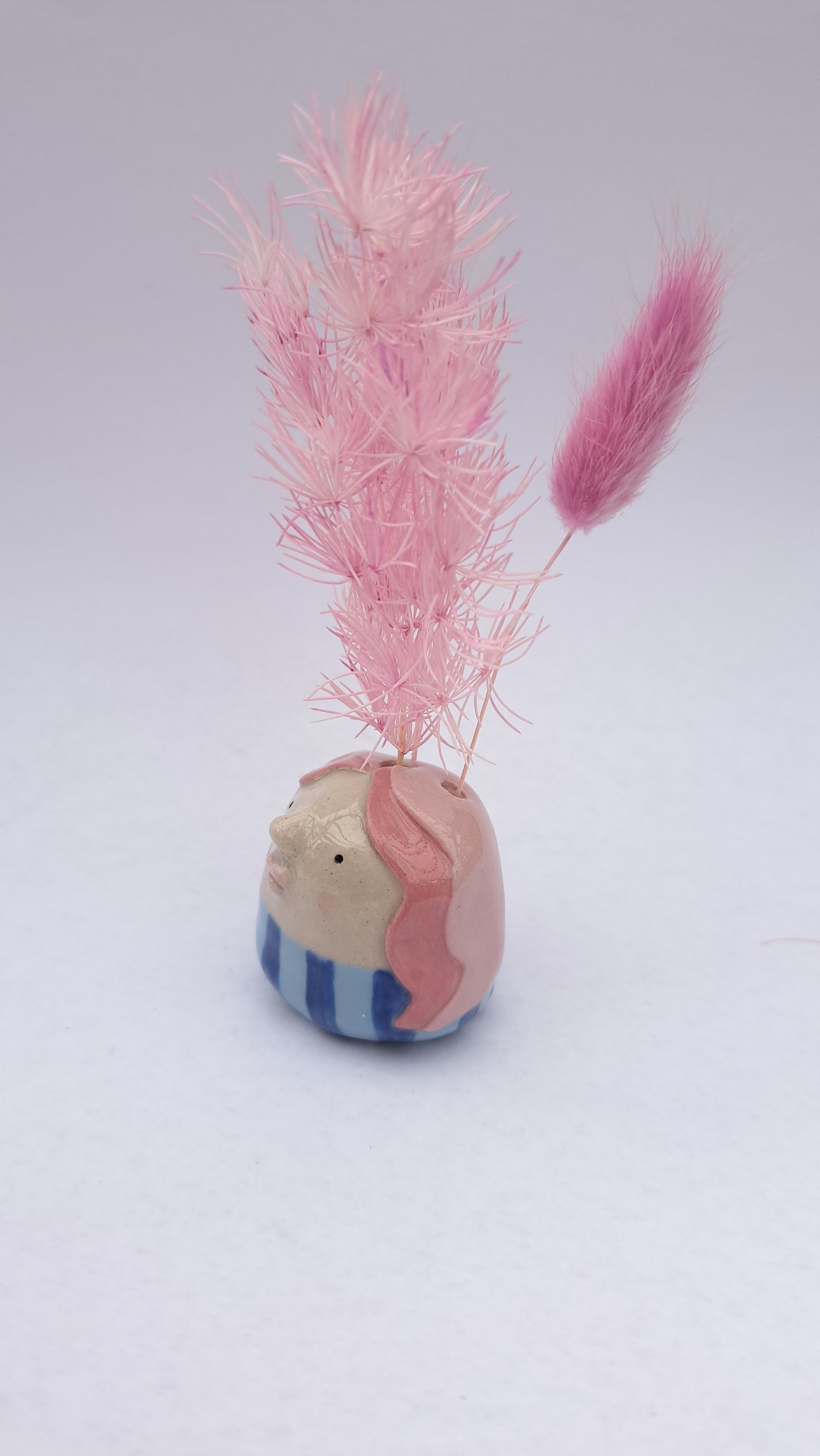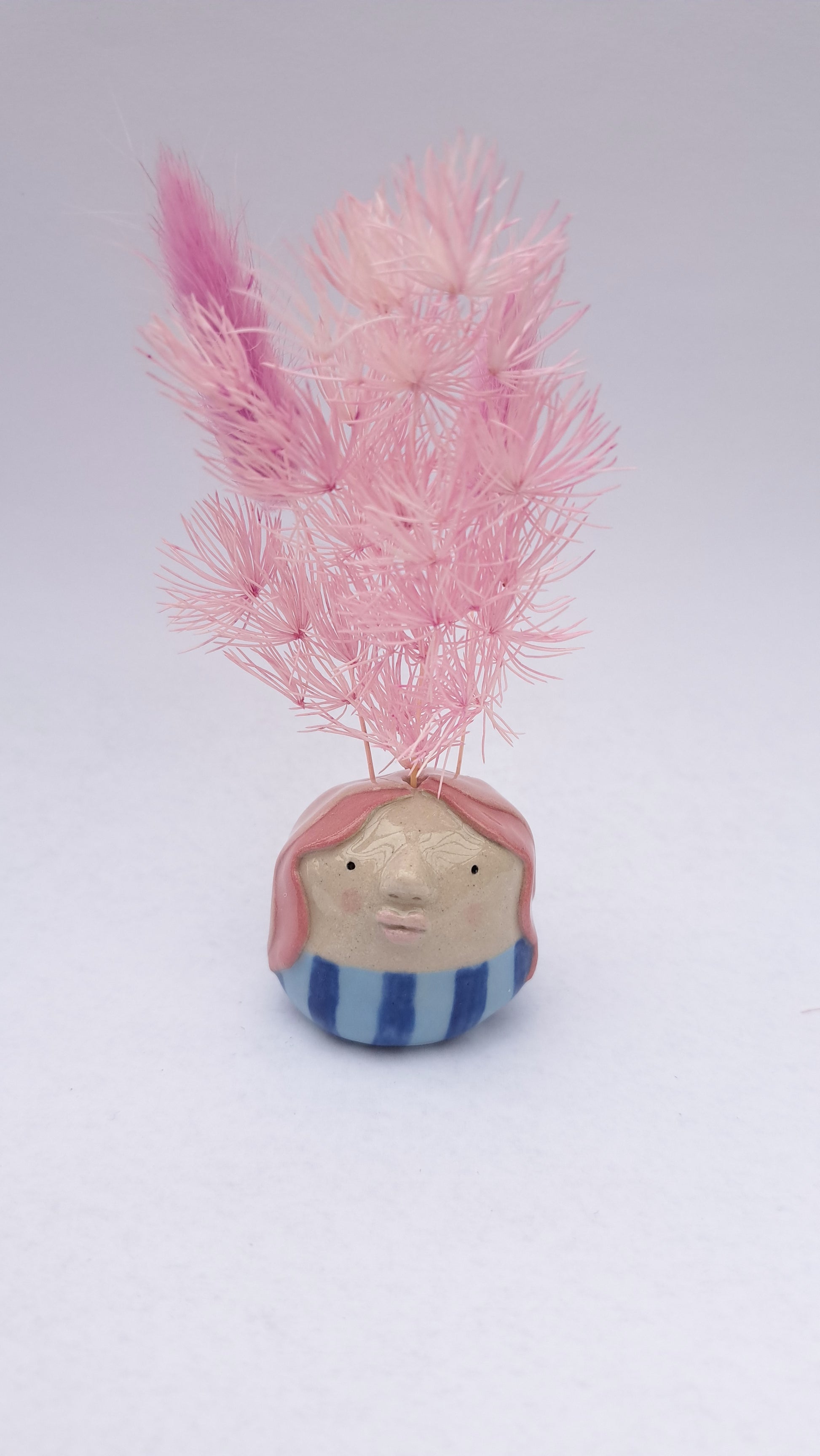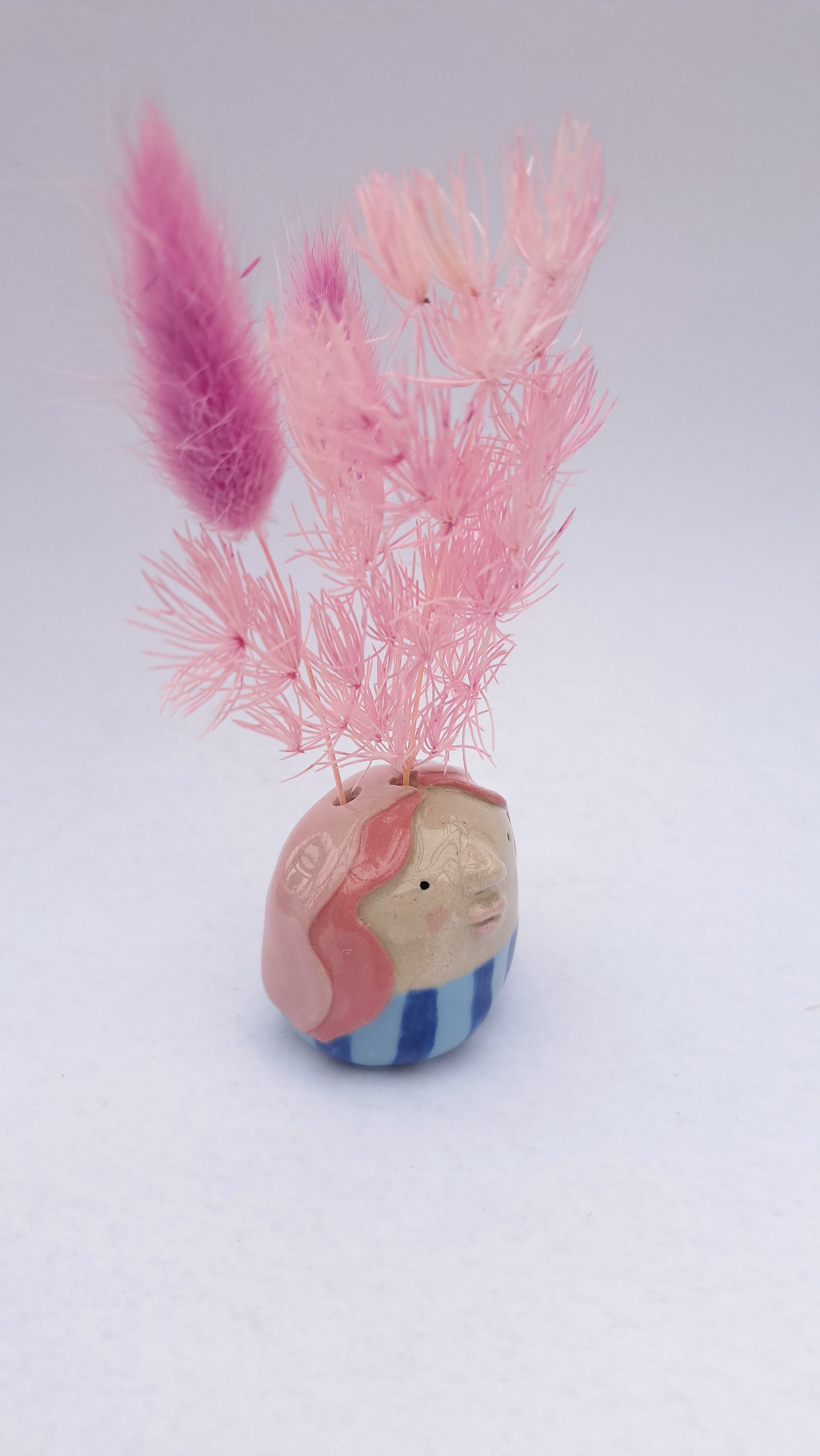 Each one is unique and have their own individual character. It has 3 little holes for displaying dried flowers.
