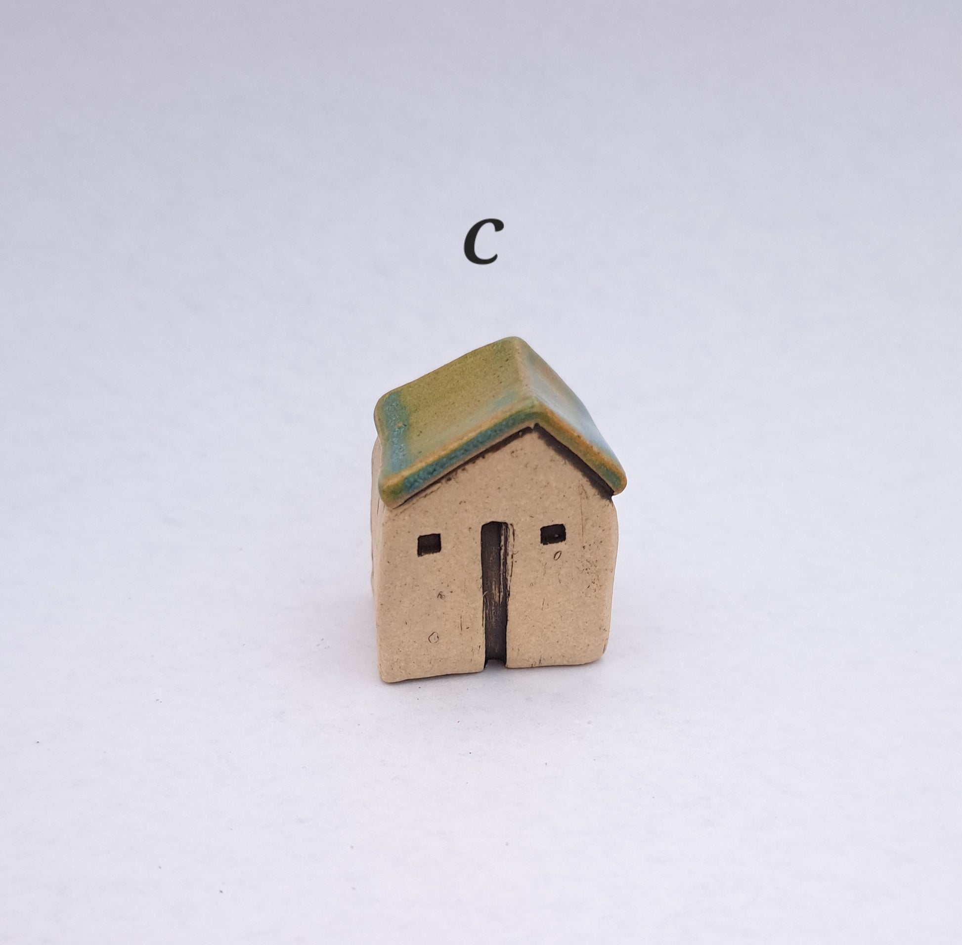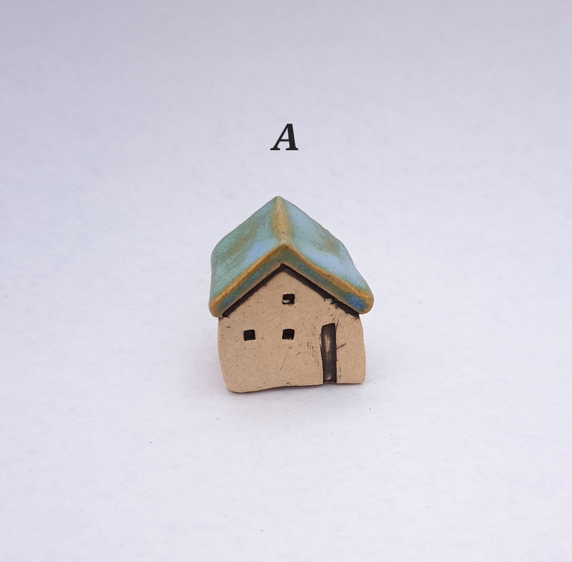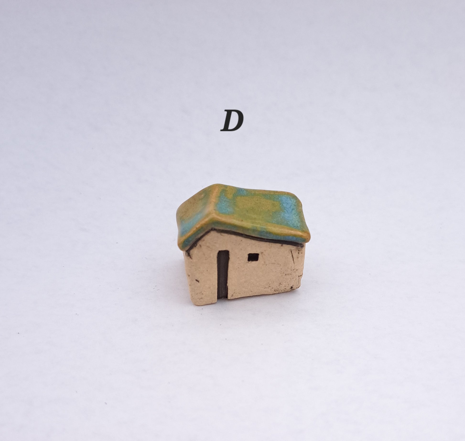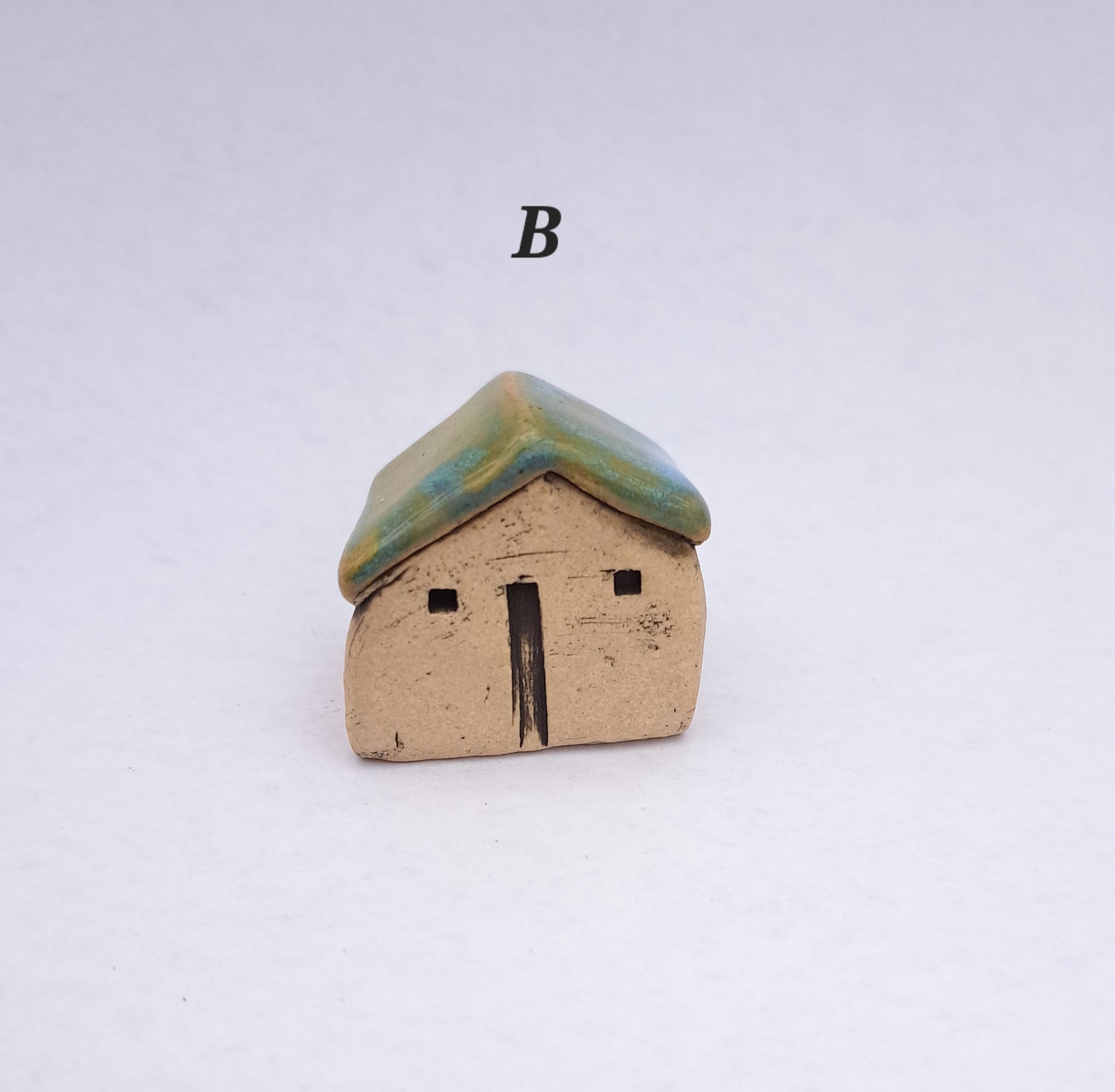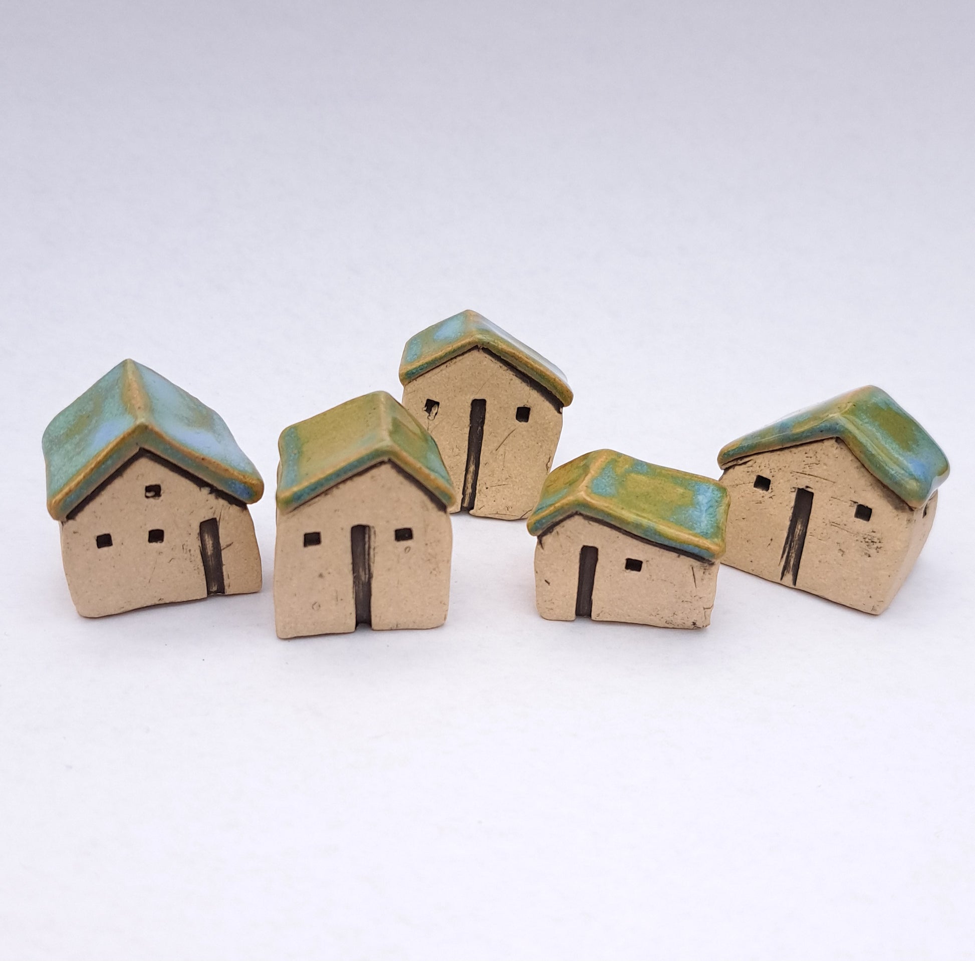 These quaint little ceramic houses are all hand-made and unique all with their own character. The walls are a cream coloured clay with a black stain. The roof is finished with a beautiful green with blue highlights glaze.