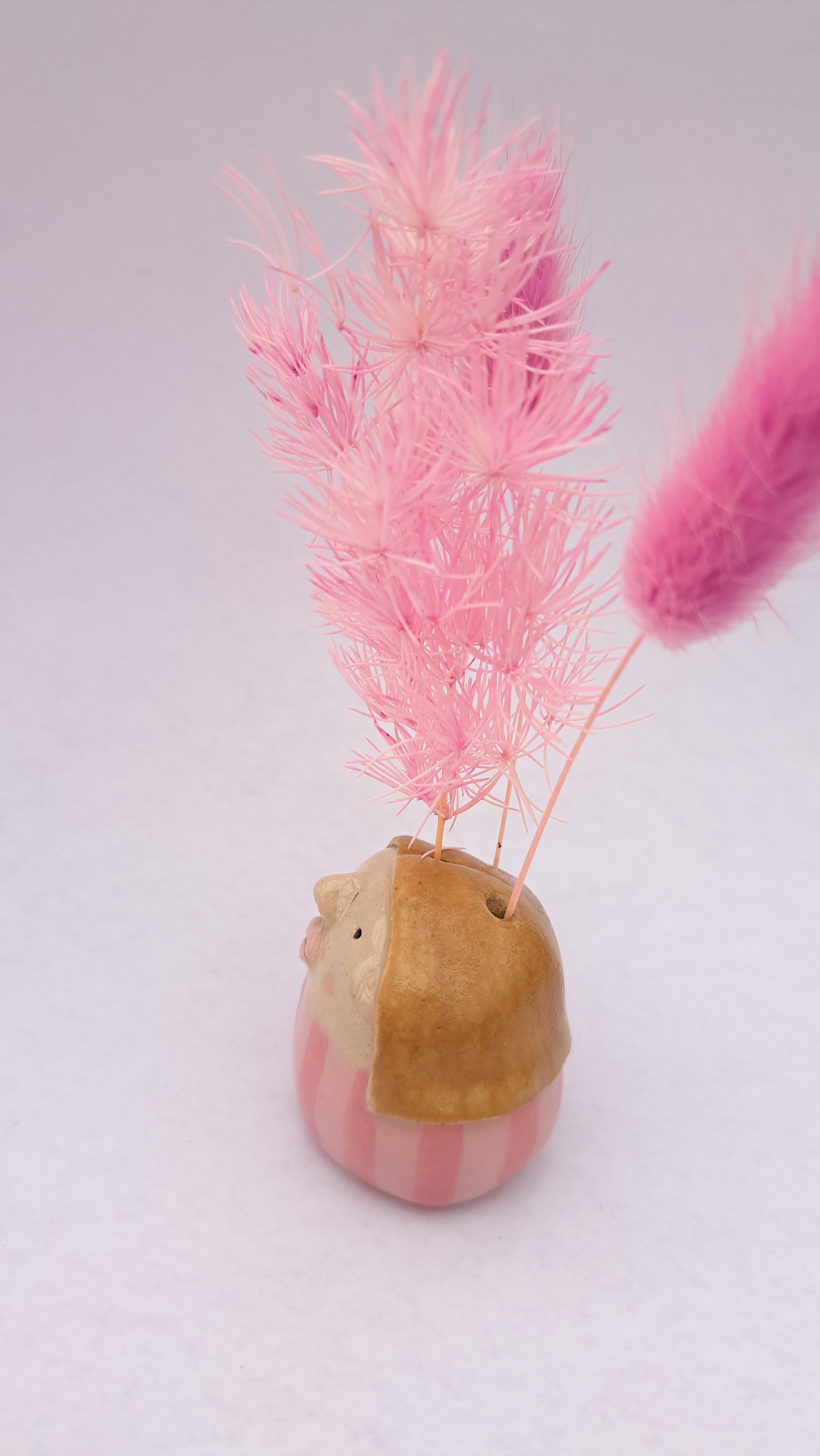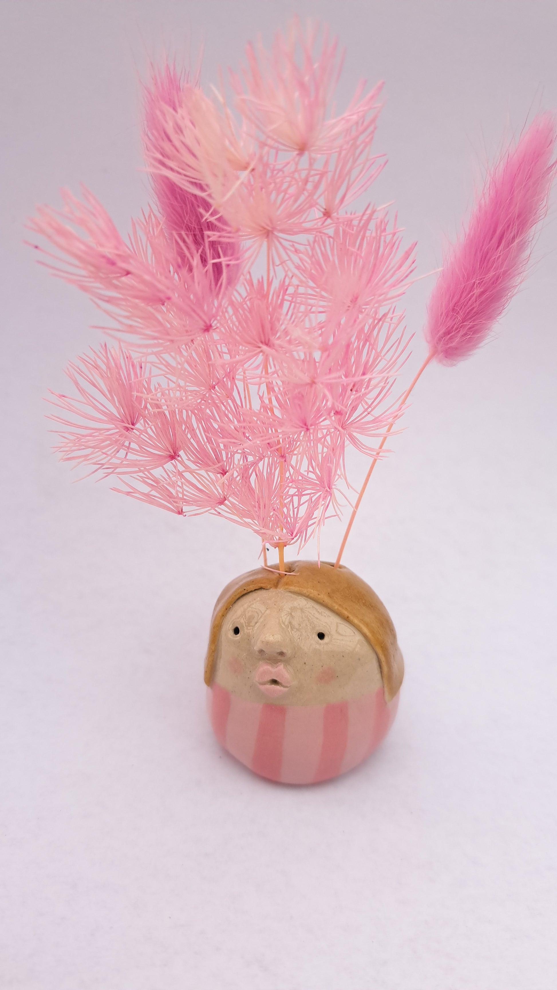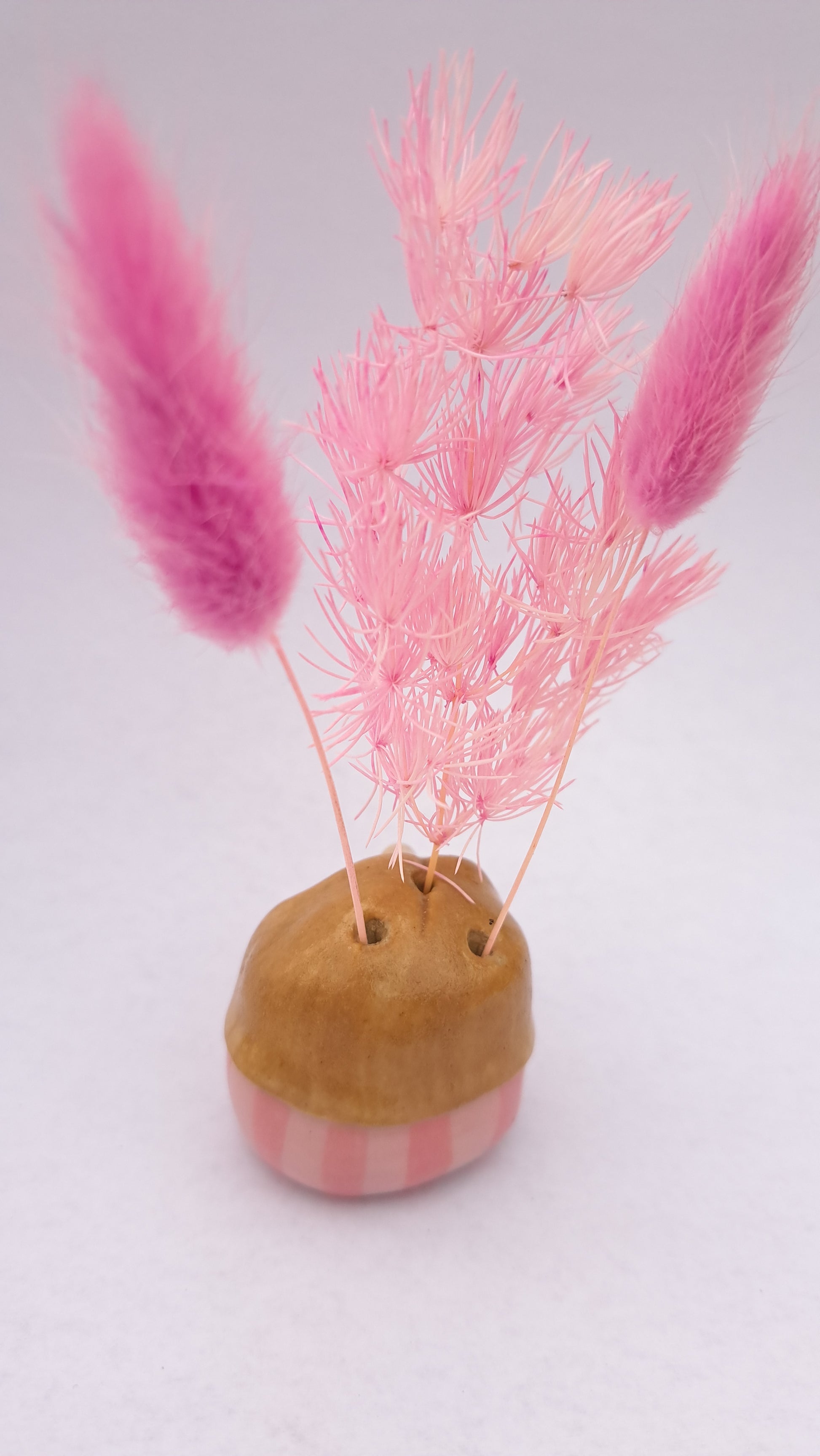Each one is unique and have their own individual character. It has 3 little holes for displaying dried flowers.