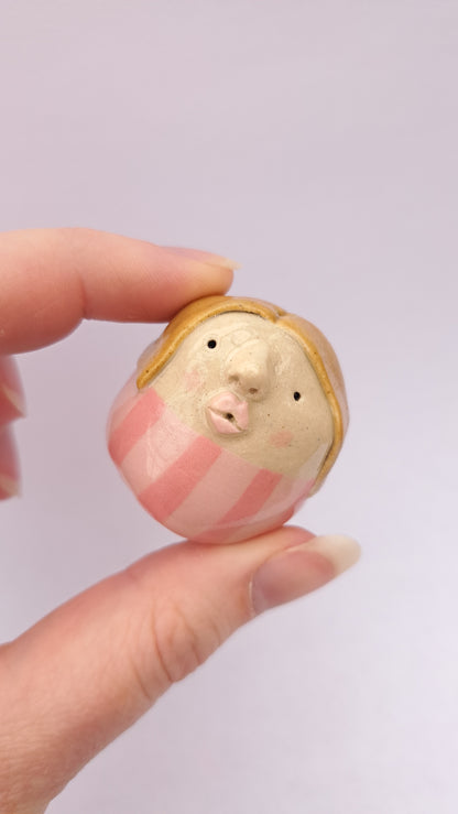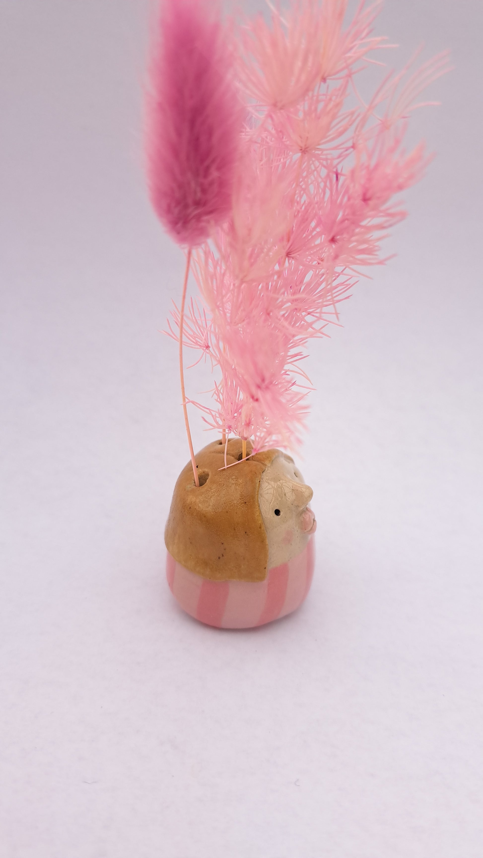 This tiny potato shaped ceramic bud vase 100% hand-sculpted, painted with underglazes and finished with a shiny transparent glaze.
